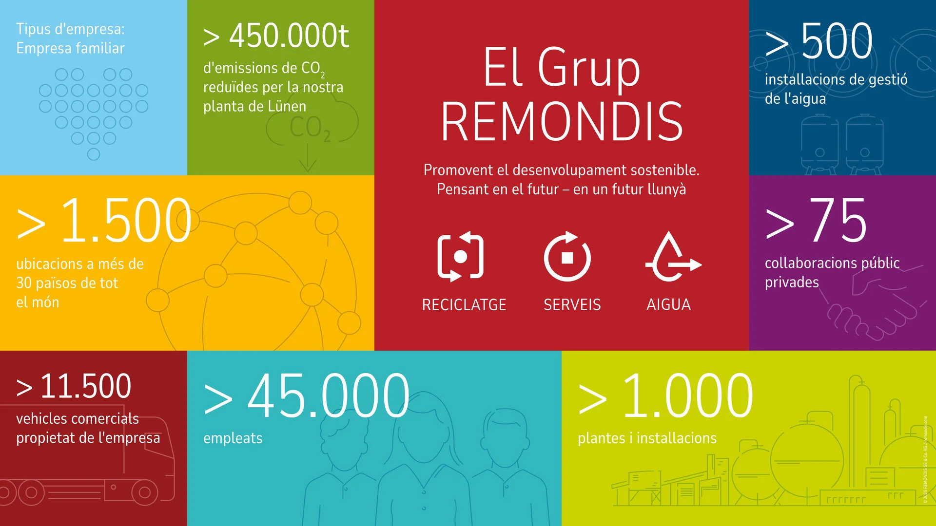 El Grup REMONDIS és una empresa familiar amb més de 80 anys d’experiència en la recuperació de matèries primeres, el desenvolupament sostenible de productes i la gestió de l’aigua. El Grup també proporciona solucions segures i respectuoses amb el Medi Ambient per als residus perillosos no reciclables.